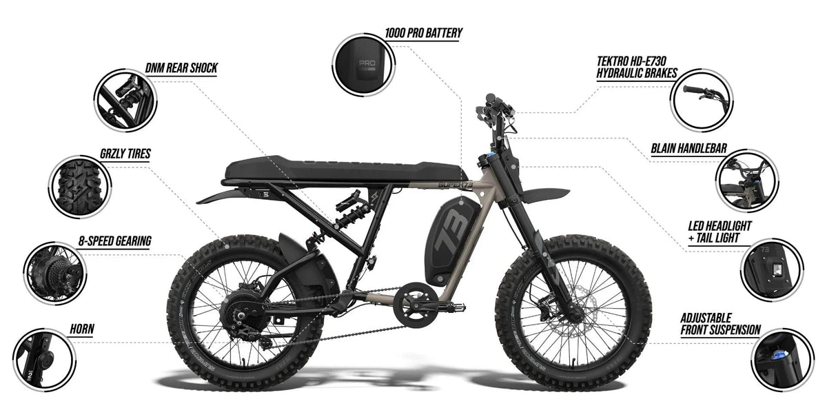The Adventure Series flagship model and everything you could possibly want from our Performance Adventurer. We're redefining electric excellence with a new, UL-compliant 1000 Wh removable battery, Magura MT5e brakes, full suspension, and improved weight distribution. If you're still craving more action, you're in luck because we also included a powerful new battery system that allows you to fully customize your range and power output. Each feature has been carefully curated to make this the best ride we have to offer.